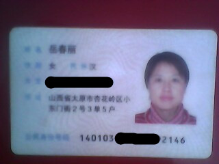 岳春丽 身份证 太原市小东门街2号3单元5户